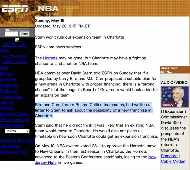 当年的报道,拉里-伯德最开始对买一个球队非常感兴趣