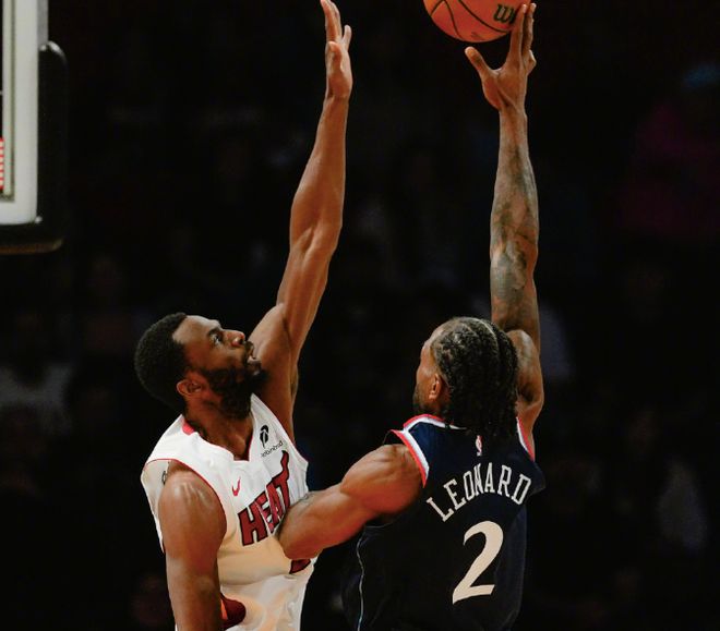热火这边三分21中14,鲍威尔面对旧主拿到13分,阿德巴约14分。