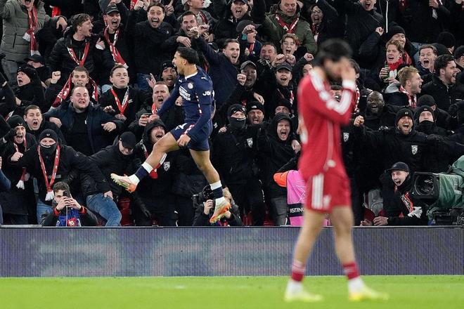 利物浦第二次在欧冠主场丢4+球,上一次是2023年2-5皇马